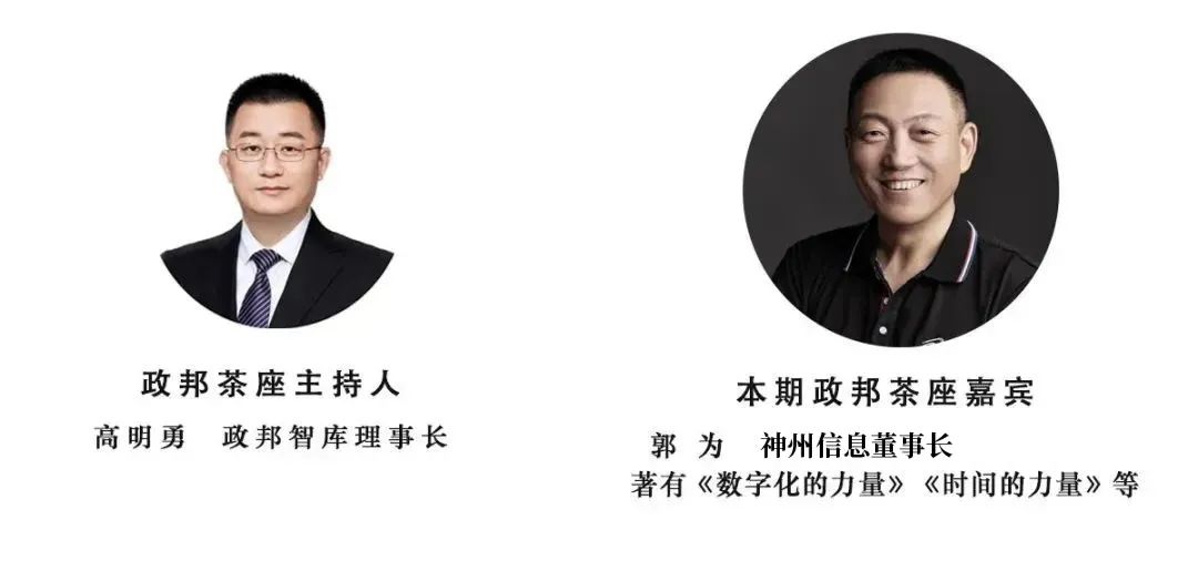 本期政邦茶座嘉宾:郭为 神州信息董事长,著有《数字化的力量》《时间的力量》等。